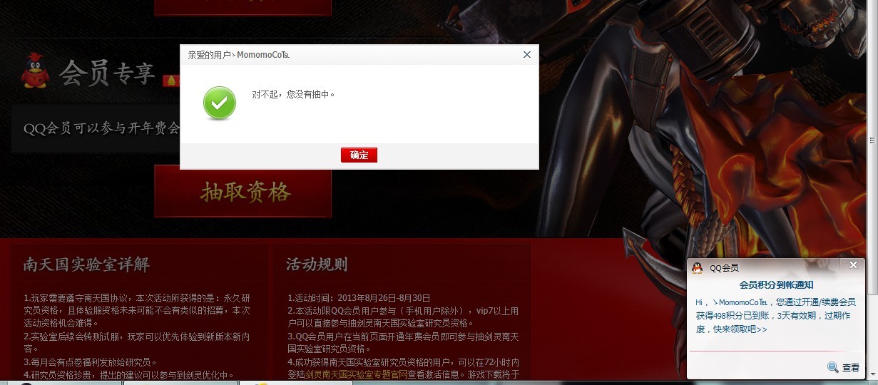 我自己的经验是会员也许几率大,但是一次抽不中就真心疼,我就是其中之一。看到没抽中的图标真心难受,后来借几个朋友的VIP7,都没中,者免费的也没什么好说的,有机会就尝试中了当然最好。我自己红钻蓝钻活动没尝试过。看到黄钻活动不错,1月就有一次抽机会。而且算是没有什么谢谢参与的奖项,就试试。结果抽2次就中了,看到许多贴吧里朋友都是黄钻几率大,我也觉得靠谱就推荐了。但是这也是和RP挂钩的。只是对准备抽的朋友说黄钻相对来说最靠谱。这就是本人的一点建议。