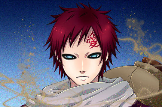 一个没有感情的人,发誓只为自己而活,从杀人中寻找乐趣,并用沙子在额头上刻了“爱”字。 由于惧怕他体内的怪兽会占据他的心灵,我爱罗从小患了失眠症,这是为什么他的眼圈是黑的缘故。平时背上背负著一个巨大的葫芦,当危机出现时,葫芦中的砂子会自动保护我爱罗。