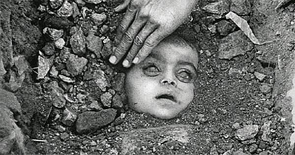 被埋葬的不知名的儿童。这张照片显示了世界上最严重的工业灾难,是由美国跨国化学公司,联合碳公司造成的。