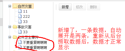 如题, 数据新增后,自动展开展示的数据是重复的,求解啊