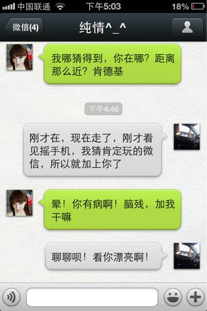 肯德基看见一个美女玩摇一摇,于是本吊也摇,就有了下面的对话