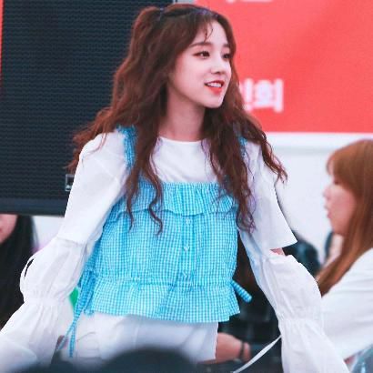 扎着辫子显得精神又秀气,手摸着显得有气质,一身粉红色的衣服增加了色彩。但是我觉得光调的不太好,使衣服白色的部分有点发黑,【我也不知道是不是故意这样的】
