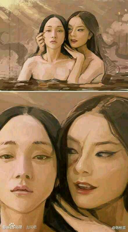 这些都是画的,只是画家为了更像,脸都是用化妆品画的