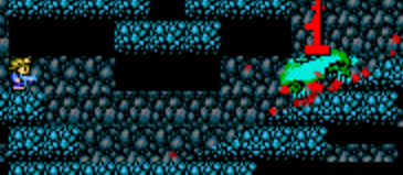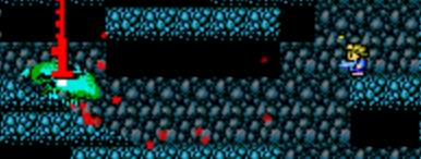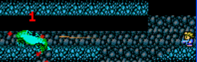 这儿也可像上次一样跳过去,但是他在最顶端时不要妄想从缺口通过,你没他快保证你还在斜坡就会被他追上,另外在下方打时不要到下面一格去,否则他会沉