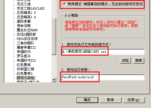 首先登陆“浩方”/进入“游戏大杂烩”/选择“战地1942 ”启动文件选择“BF2.EXE”、并在目标添加“+modPath mods/你模组文件夹名字 ”