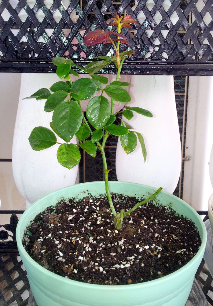 瑞典女王:这个造型有点别扭哈~~~浪漫比克:这个比较惨,来的时候折断了一根枝条,营养钵也破了,土散了一地:
