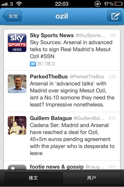 这回假不了了,天空体育跟goal.com都报了这条新闻,转会费大概在4千万到5千万之间,看着真酸啊 ... 阿森纳中场有卡索拉小威胁罗西基拉姆塞迪亚比阿特塔等等人才、妖星云集,在这种情况下都知道像厄齐尔这种大鱼不易出现必须拿下 ... 反观你魔 ... 最匮乏的就是创造型中场,何况还是顶级的 ... 唉,说多了都是泪... 这会儿英国也晚了,估计莫耶斯和伍德沃德都已经进入甜蜜的梦乡了 ...