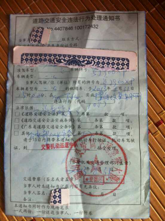 拦我停下,查看驾驶证和行驶证,然后说我的镜子是改装的,把行驶证的照片和实车对比一下,就这样行驶证和驾驶证就被交警拿了!拿去开罚单了