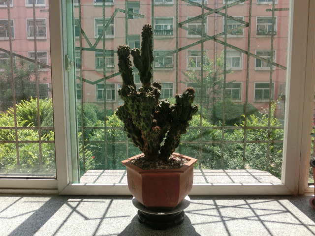 这是我和爱人结婚时买的,可是当时不会养,浇水多了,大部分给死了,然后把还带绿的剪下来两小块,凉干后种下了,活了这一棵。长成现在这个样子了,我很喜欢。
