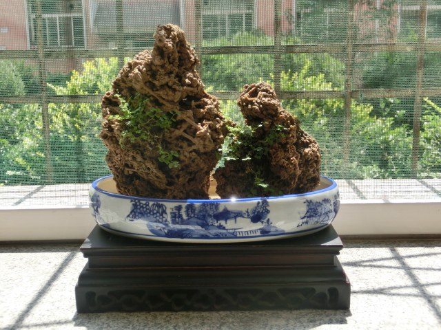 漂亮的假山,添韵味的小植物,可爱