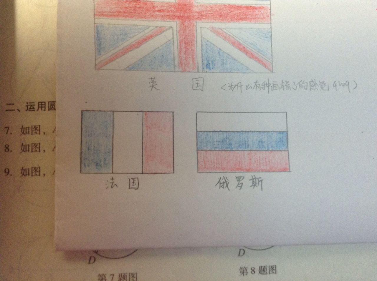 字啊……我莫名的只有用铅笔写字才能写成这样(。其实国旗什么的就那么几个颜色啊……