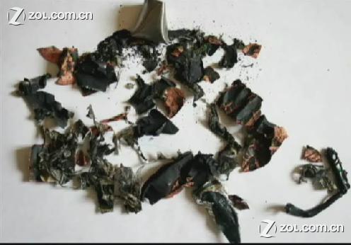 实验一:假冒诺基亚组装电池-------即俗称的假电,仿电,高仿电 爆炸温度:46摄氏度;爆炸瞬间超过235摄氏度。 爆炸现象: 伴随着金色的火星,电池先膨胀,之后猛的爆炸,火星向四面八方喷溅。 爆炸威力:5颗星 碎片:焦黑,大块
