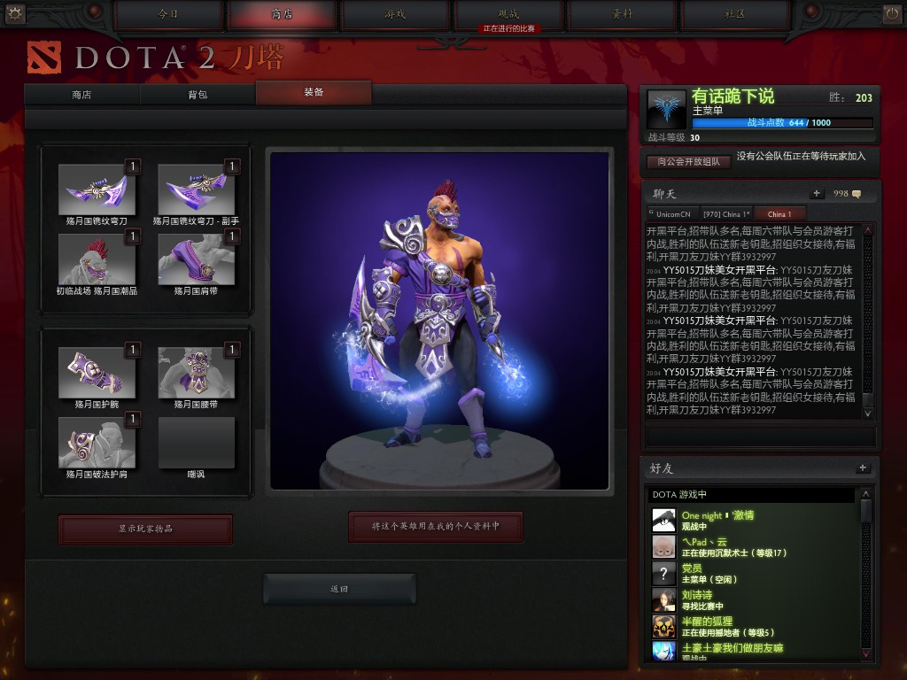 【供】敌法暗金殇月套 熊德新套 【求】k