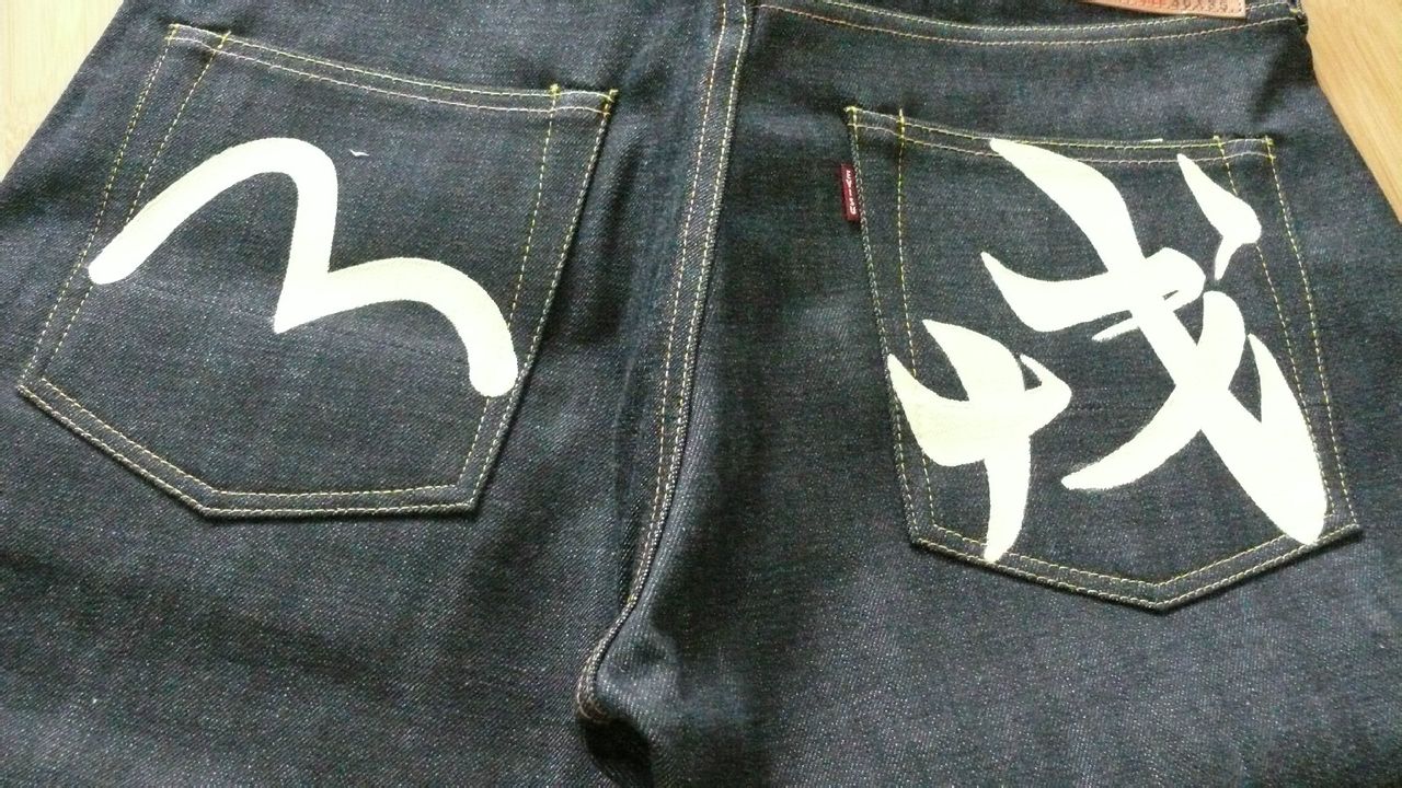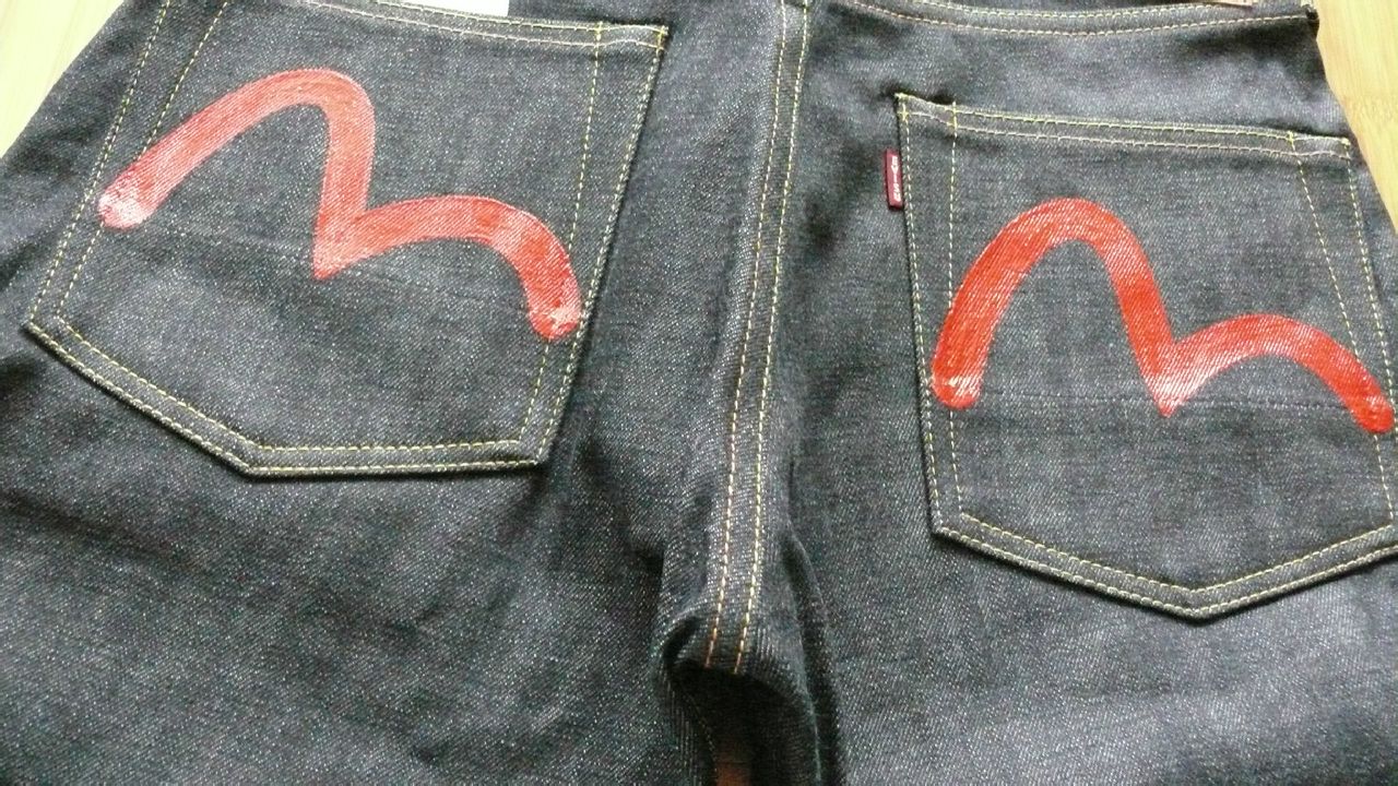 日版evisu NO2 红色小M 日本制造 小红旗在屁兜 原浆 W31 2000裤型具体数据