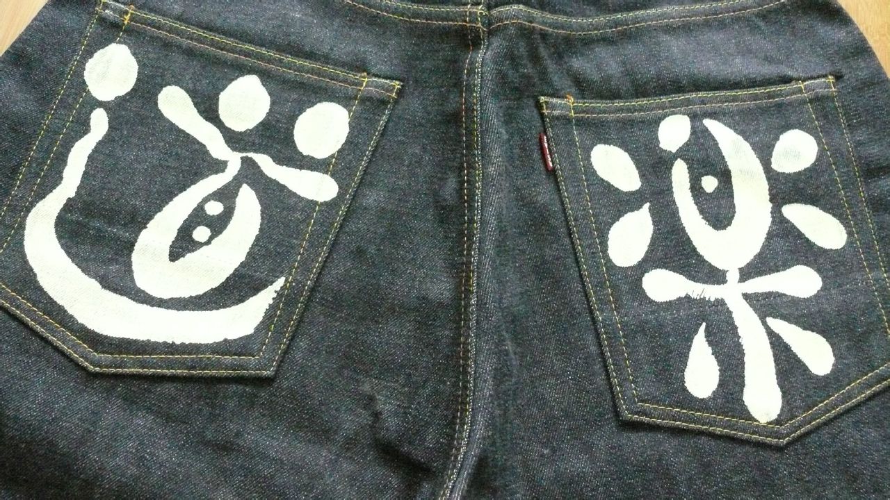 全新原浆 未下水的 日版no22001裤型 W33腰围 手绘白色道乐 赤耳。