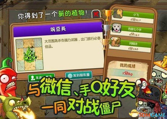 在游戏过程中,玩家可体验到排行榜、阳光赠送、好友分享、植物借用等新鲜有趣的玩点。玩家可为好友赠送阳光,并可在挑战过程中使用好友赠送的阳光令战斗力更加充沛,获得好的战斗成绩后,还可向好友发出炫耀,进一步加深互动趣味。