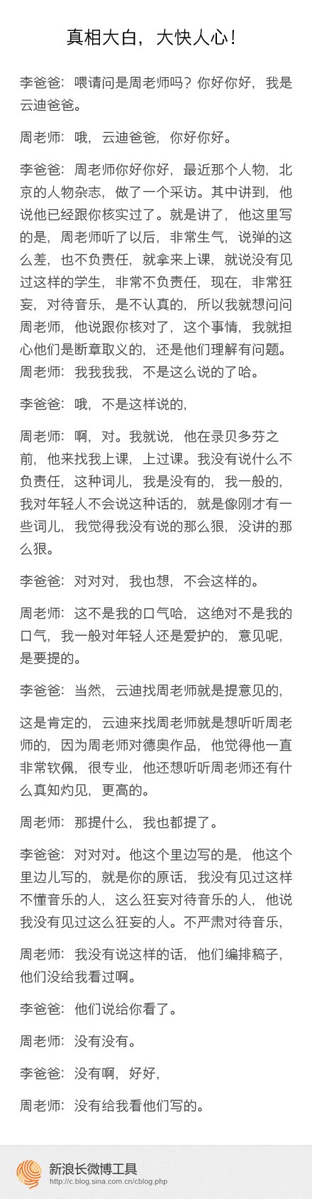 【微博】云迪音乐致电周广仁老师,回应人物杂志