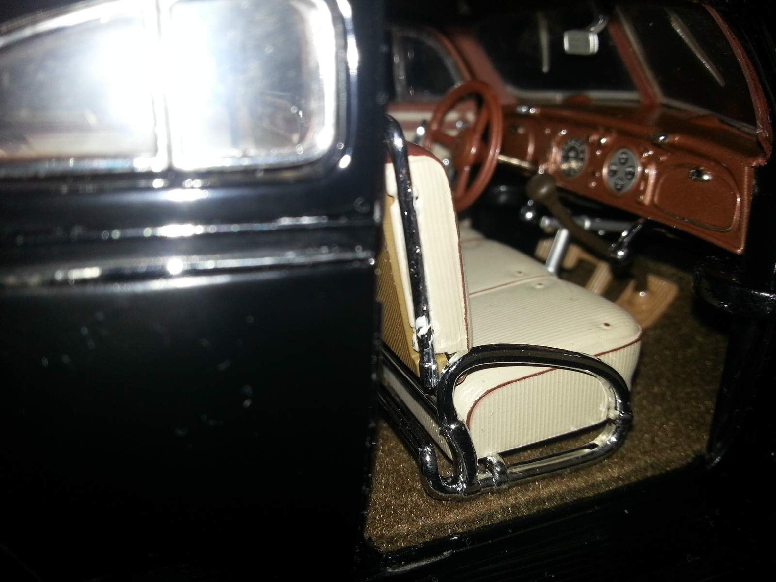 美国富兰克林出品的该款1:24比例车模型,做工精湛。整个模型使用合金材质,内饰精致,座椅可活动,方向盘可控制前轮转向,金属烤漆,每一台都配有收藏证书等文件。