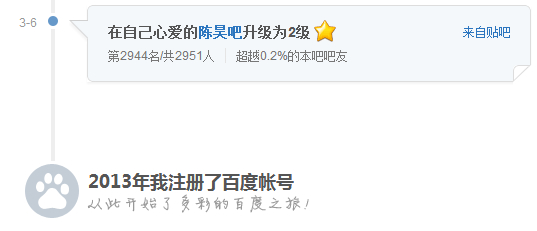 3月5日进陈昊吧时我是第2944个注册的粉,今天我排名60。排名不说明什么,可能只代表我对少爷的态度——不温不火 不离不弃 不说永远