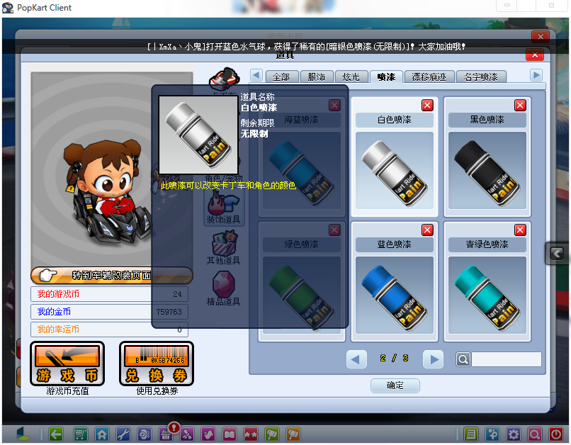 除了粉红喷漆和红宝石喷漆没有之外 其它的喷漆应该都有了吧