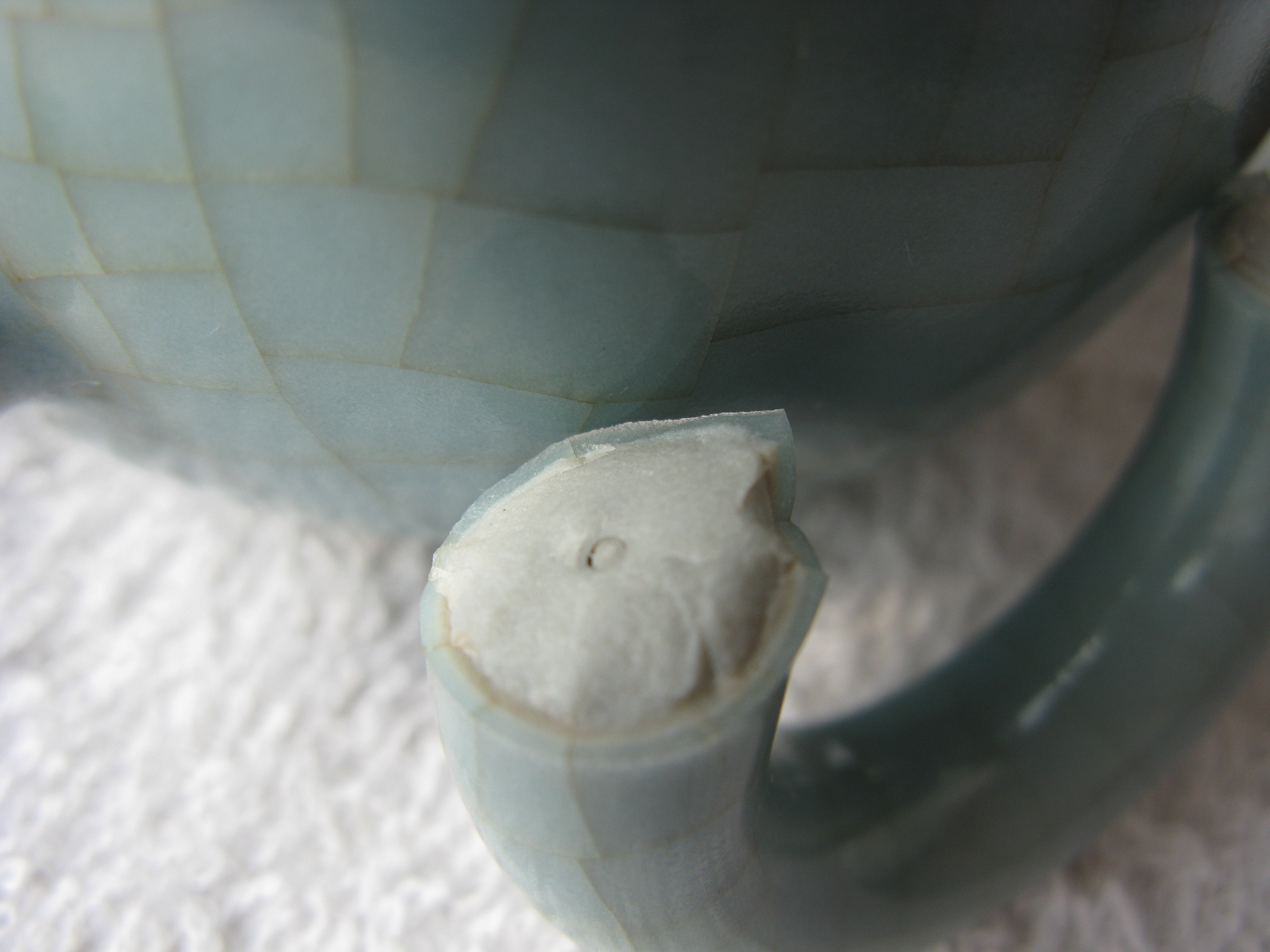 我研究了下、,应该是壶本身的问题,1600的壶,我也不可能那么使劲去掰的。应该是壶把的强度不够,胎不好,亦或是釉开裂拉伸的问题。总之,壶是有质量问题的。