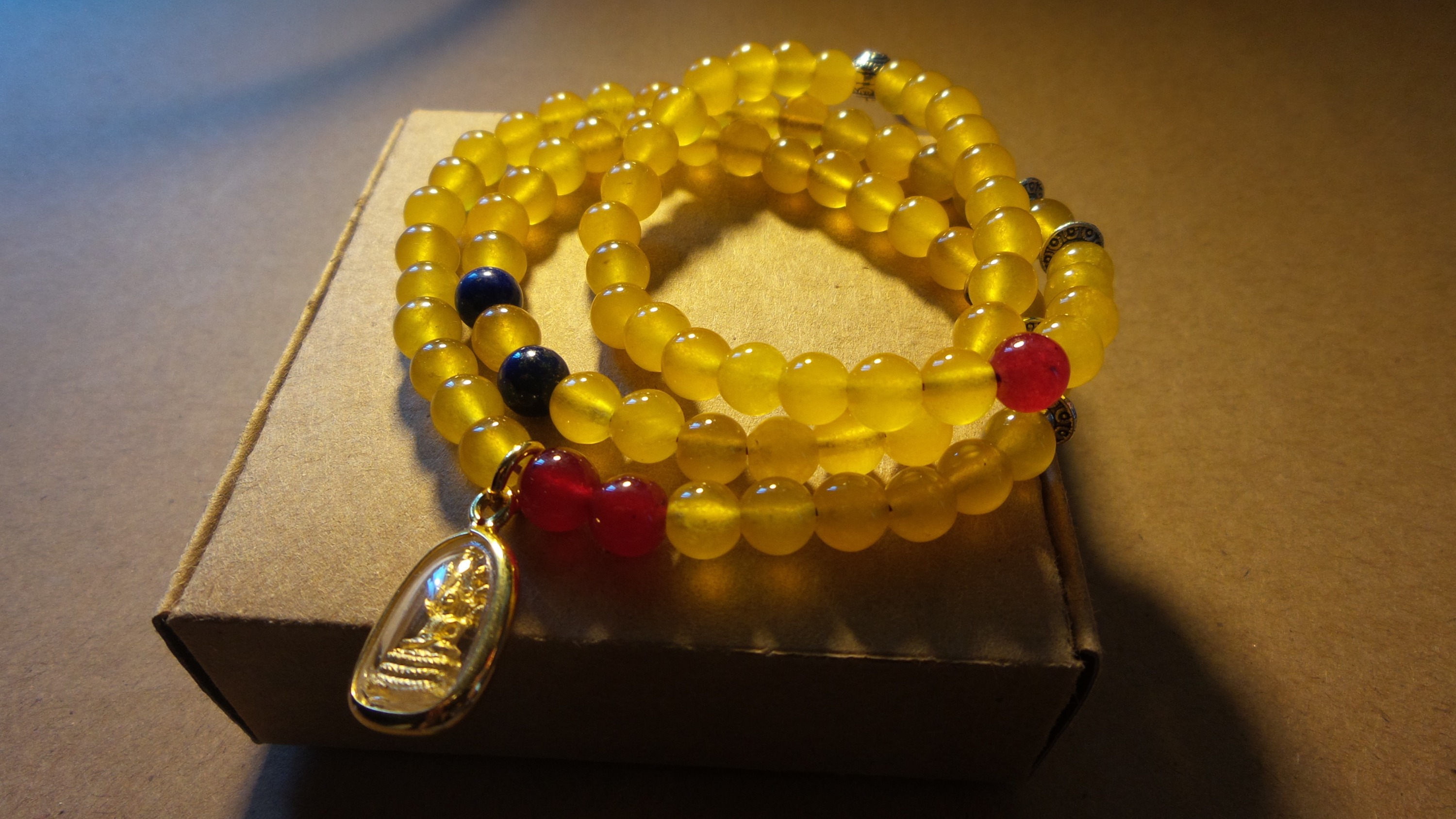 后夏 天然黄玉髓配泰国佛牌原创三圈手链
