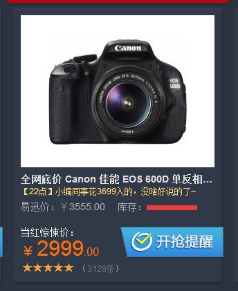 2999 什么概念。 可惜我已经入手了700D大套 不然我肯定买·晚上天黑黑的价钱。想买的人别犹豫了。这价钱这机器。快点入手吧!~