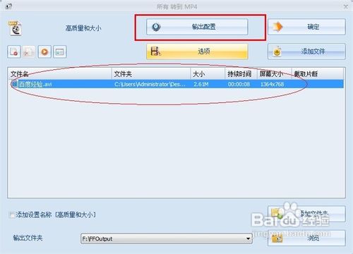 6将录制的视频文件拖到, 软件窗口,输出配置。