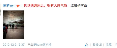 AUS_Michael_Yang:机场偶遇周迅,还很谦逊的给我们说你好,超漂亮,超赞,可惜没机会合影。