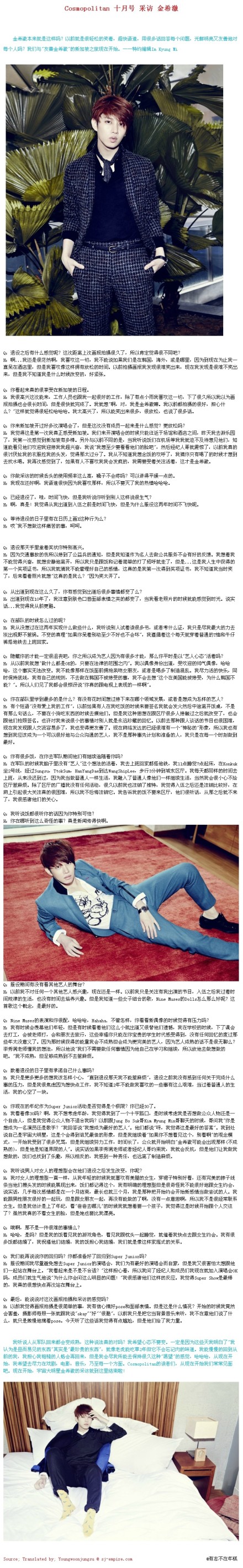 ┣130923★消息┫Cosmopolitan 十月号 采访 金希澈 翻译