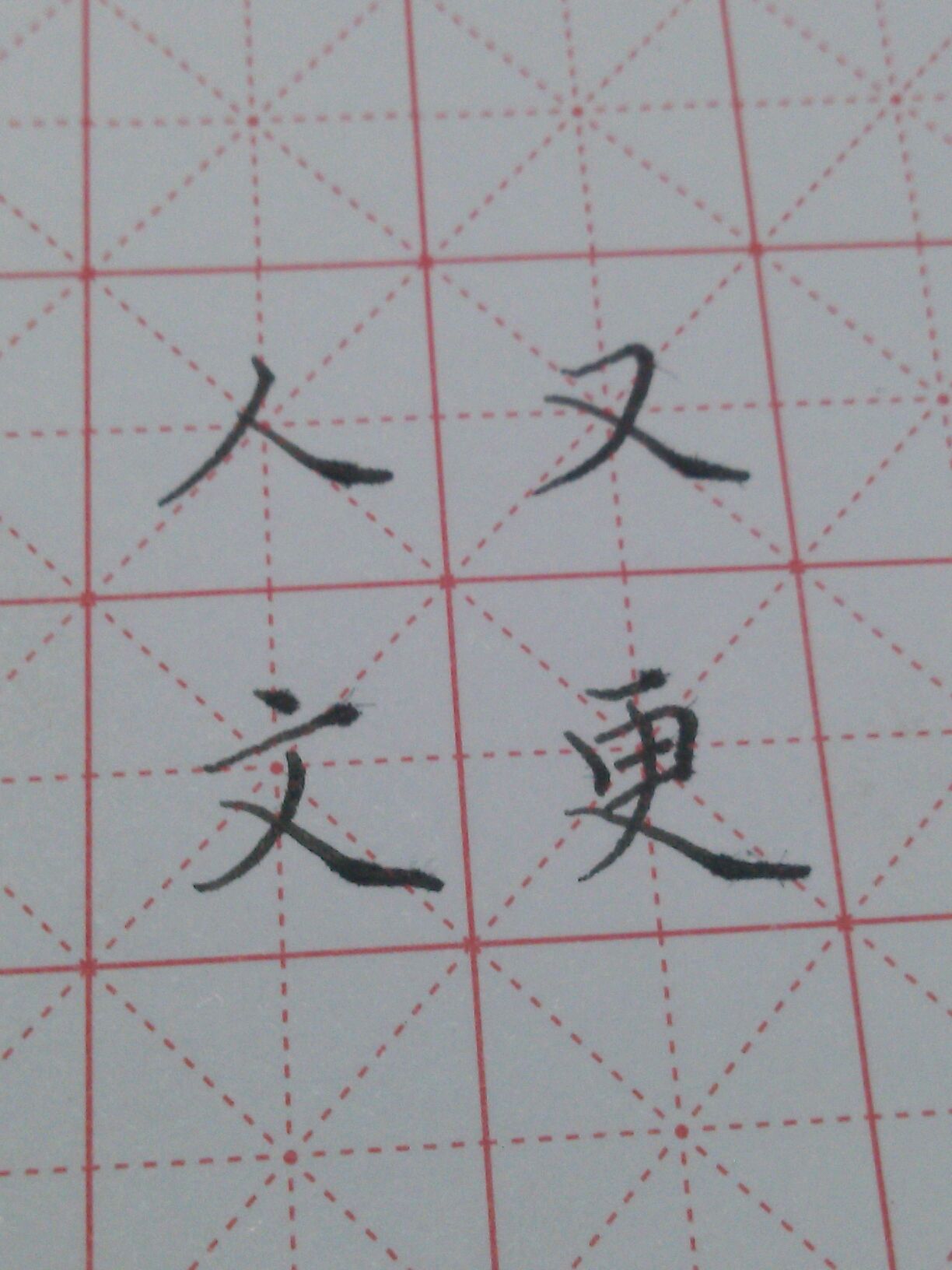 重点:斜捺注意:行笔方向改变后为水平角度,不要写成上扬或者下压