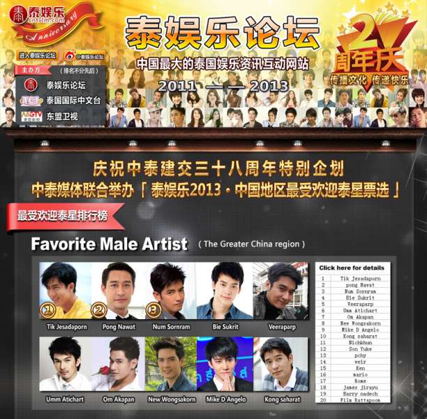 回复 泰星mike吧外交 :我记得mike也是泰娱乐第八名,他在泰国人气很高