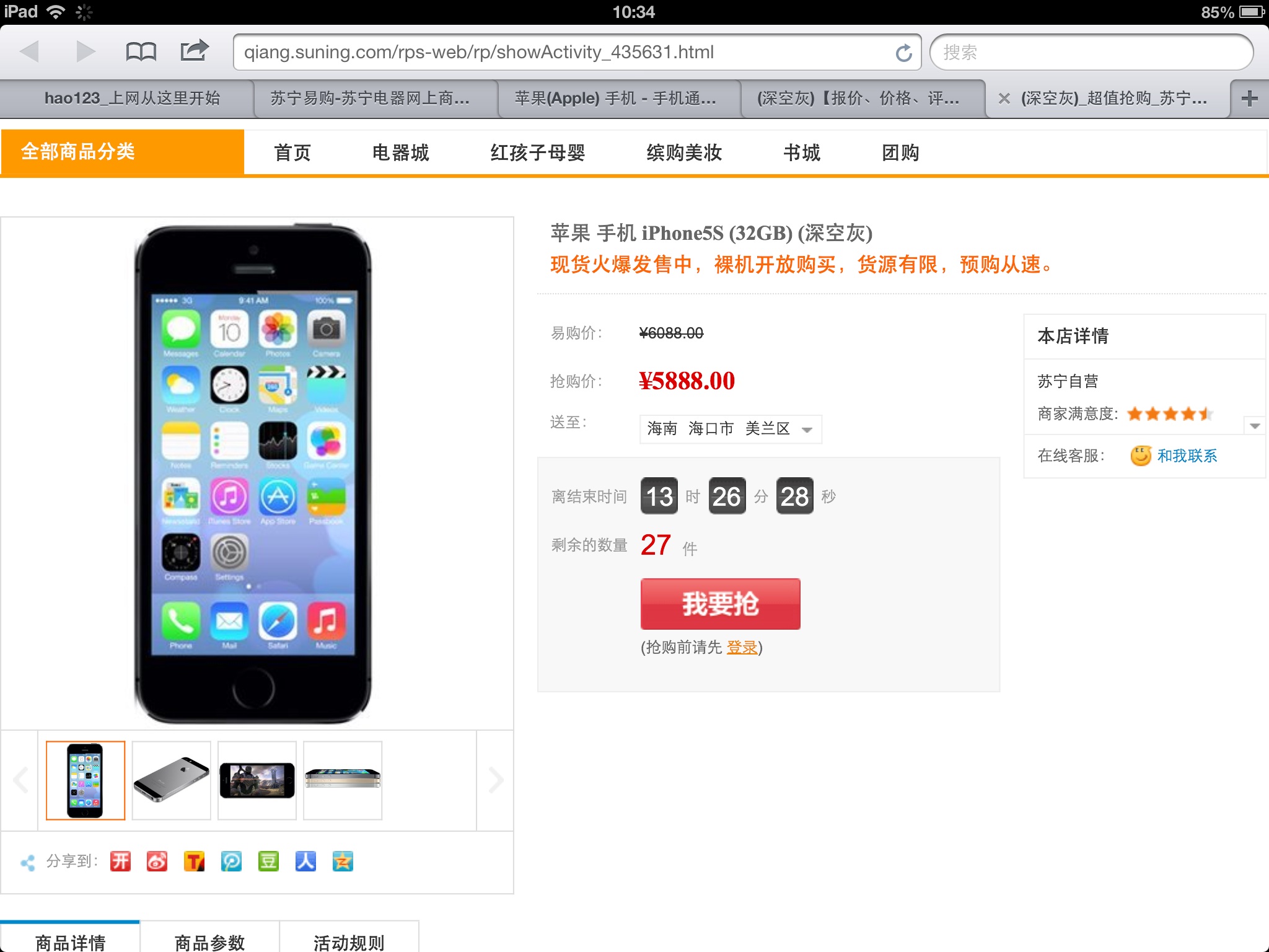 现在32G的苏宁易购已经低过官网的200了是灰色了