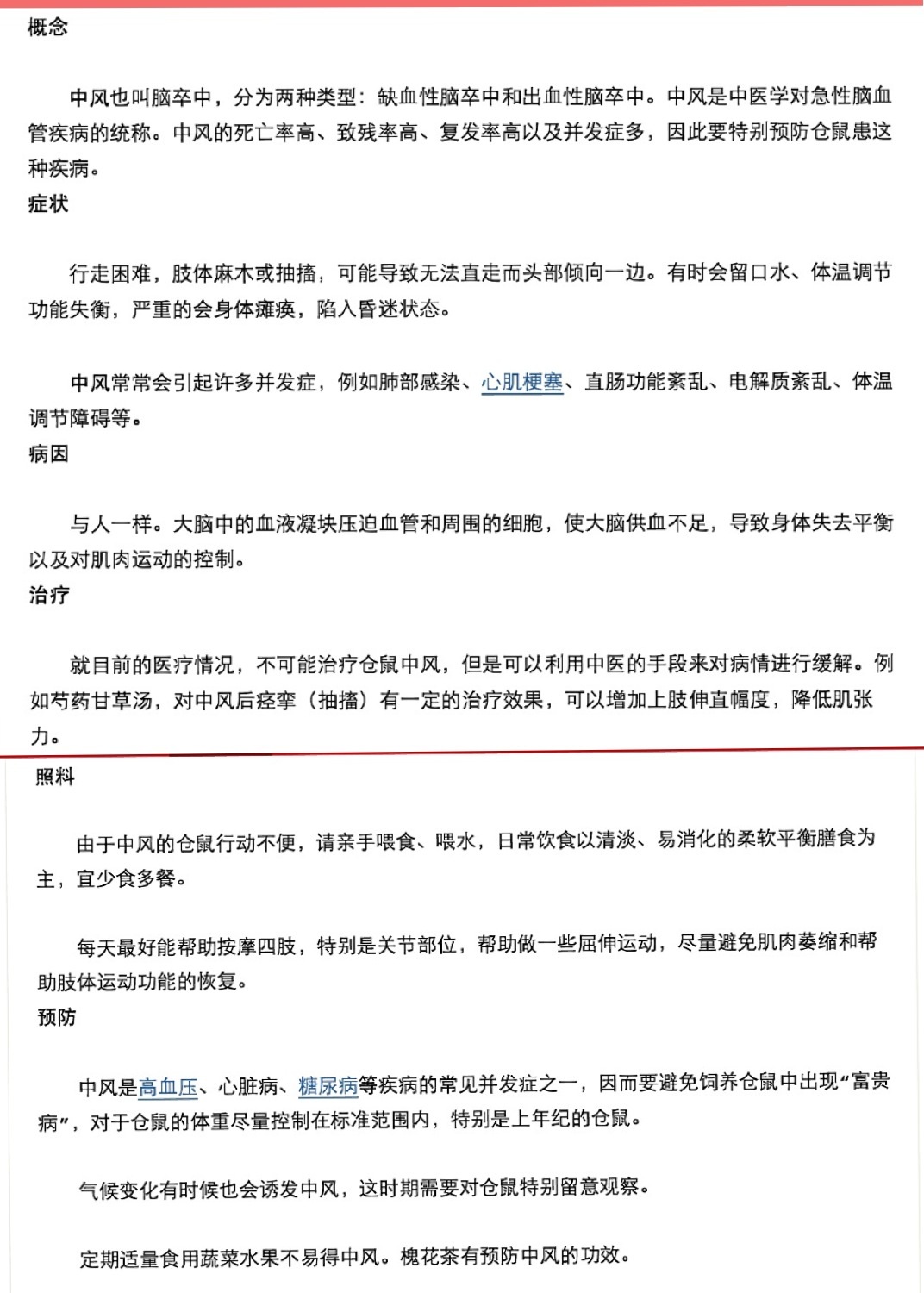 这里是我的啰嗦 可以忽略 直接看图。首先又要来矫情一下 感谢大家对我和小熊的帮助,找到这些饲养的知识 分享下。之前 我也是不在意仓鼠的治疗知识,觉得用不到嘛,经过小熊的事情后呢 对贴吧上心了,才发现原来有这么多病情。 这些是仓吧大吧主写在网上的 大家可以自己去看,我截图了一些 方便查看。