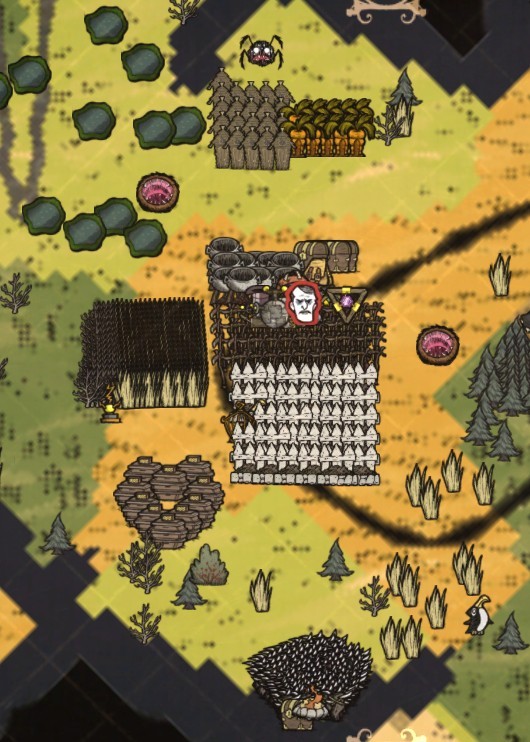 补一张全图 也不算是全图 最下面那边还没有探 猪王那边也没全探开 全图除了我家上面那个养着的蜘蛛巢穴 剩下的基本没有了 被我清干净了 无任何MOD已经199天