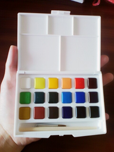 也不知道用什么好,就败了这十八色的固体水彩,其他的工具也没什么可拍的,酱紫。汇报结束