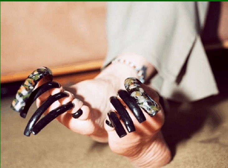 美国洛杉矶人类学家Kathy Hayes的脚指甲长约12.7厘米,每天只穿露趾的拖鞋保护指