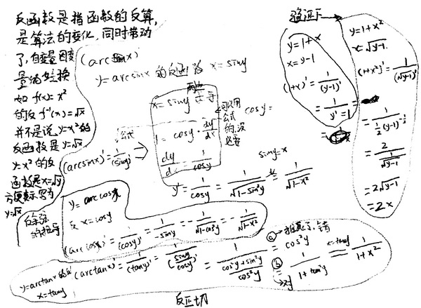 右边是用来验证公式的 反正弦 反余弦 反正切的导数都推了出来 注意理解反函数