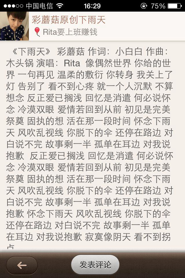 怀念下雨天,风吹乱视线,你脱下的伞还停在路边,对白说不完,故事剩一半,孤单在耳边对我说抱歉,寂寞像阴天,看不到拐点·