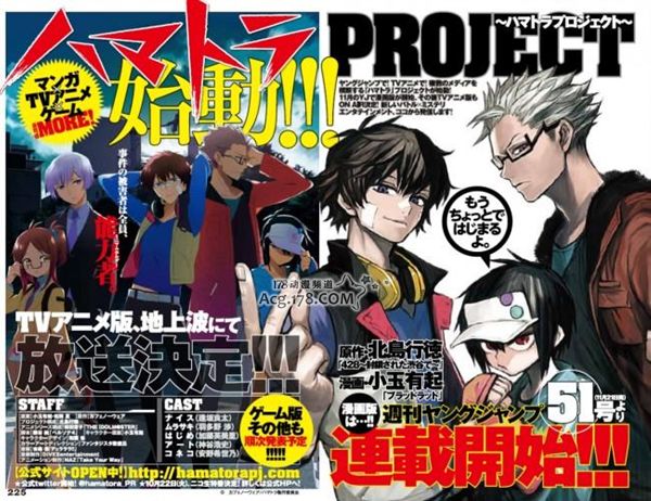 该企划的第一弹为漫画,将于11月21日起在「周刊青年JUMP」起连载,漫画作者为小玉有起。「滨虎(HAMATORA)」是一部战斗群像剧,以日本横滨为舞台,讲述了侦探组合“滨寅”与警察合作解决拥有超能力“minimum”的人犯下的案子的故事。