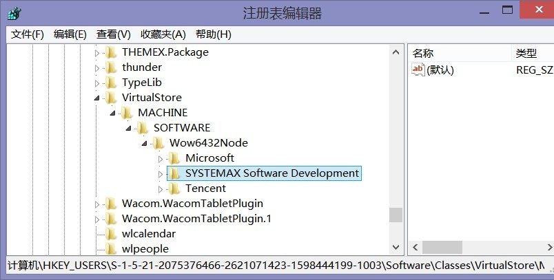然后搜索“SYSTEMAX”字符,找到所有相关项目删除,这样就能彻底删掉sai的软件记录。