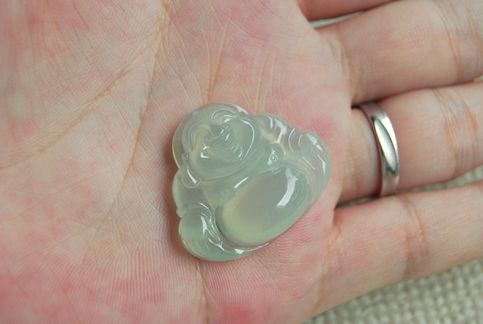 【描述】-可爱的绿水站佛,大肚子,整体饱满,底子干净,水头好,无纹裂!