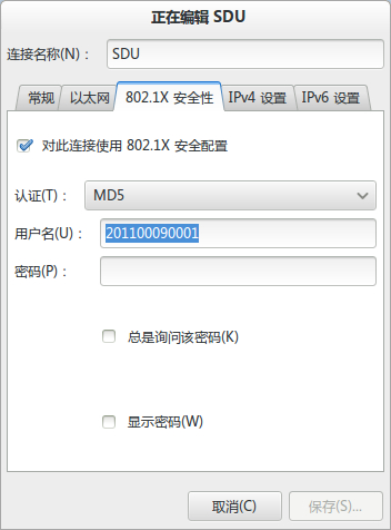 4.有些地方的校园网采用802.1x的协议,可以选择以太网,在弹出的窗口中点击802.1安全性选项卡,添上相应的用户名密码即可(有的学校采用定制过的802.1协议,此方法无效,仍需用相应的客户端)。