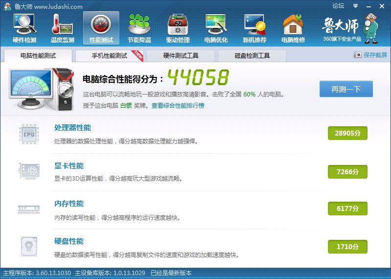 十月一买的机子 刚买的时候跑的分