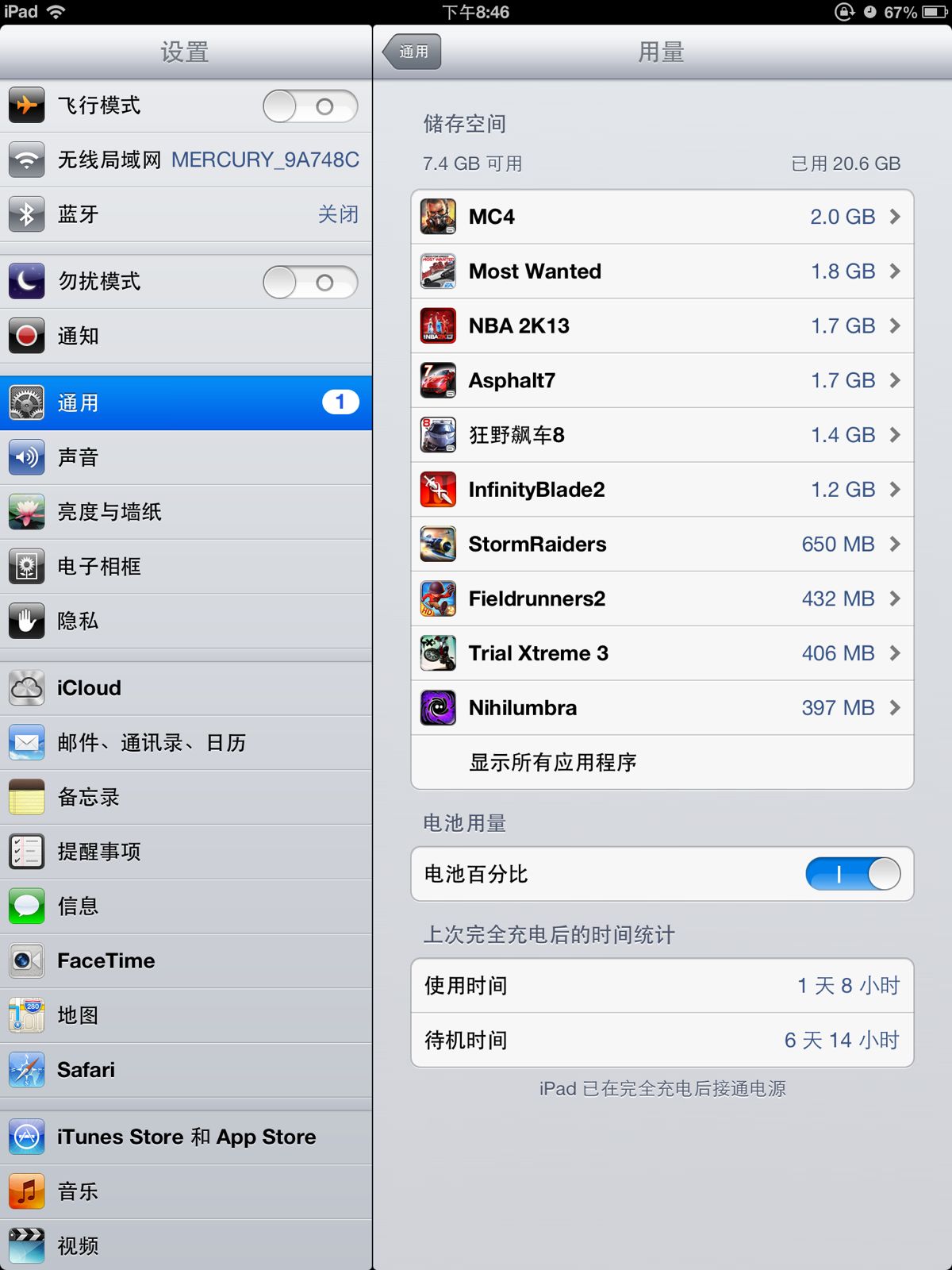这是ios6系统看看待机用量,现在跟新ios7不知道会不会航续不给力!