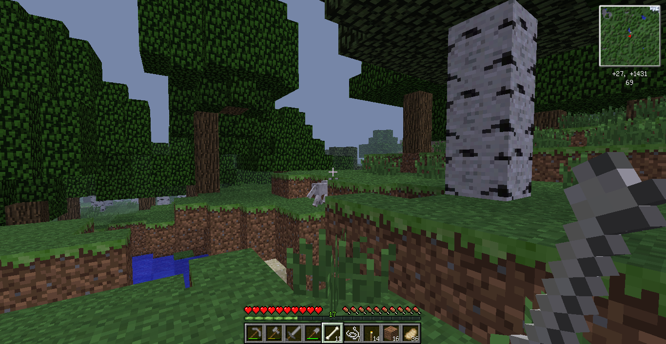 看了一下小地图 惊现村庄!决定准备好石质工具就去围观