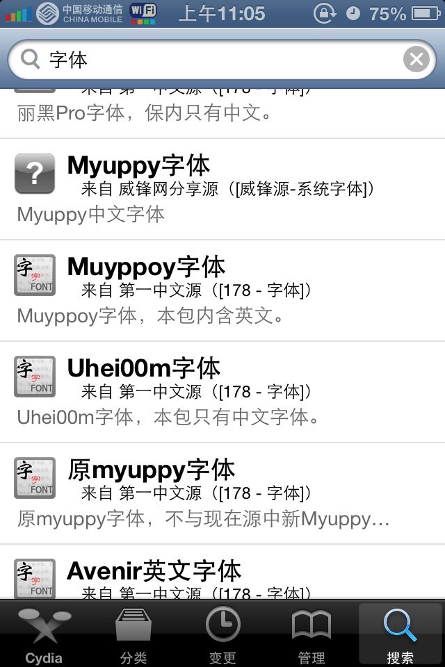 字体啊那些的怎么在cydia里下啊?楼主。求教