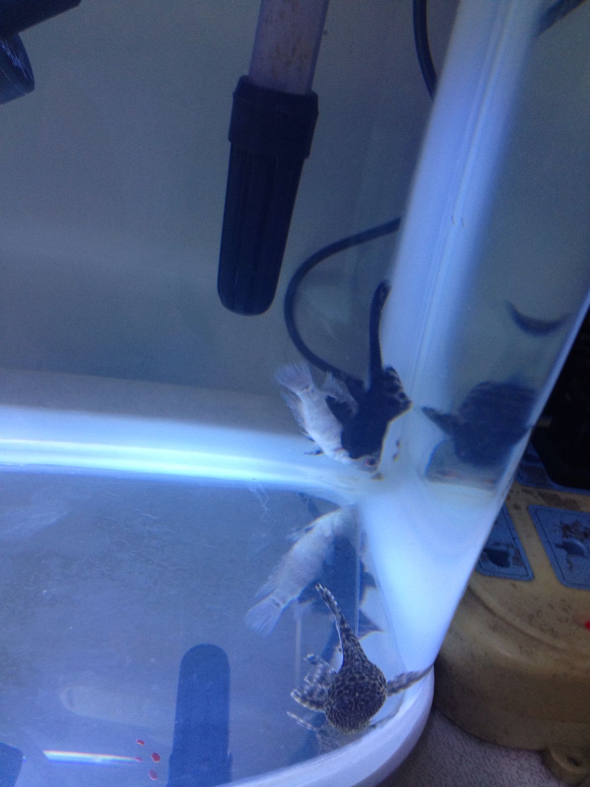 我一看,2条清道夫在哪条游不动的鱼身上蹭呢,