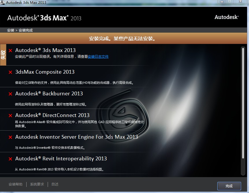 安装路径有中文。比如E/3DMAX 2012中文版 不要中文版这三个字。就可以了。2楼扯蛋