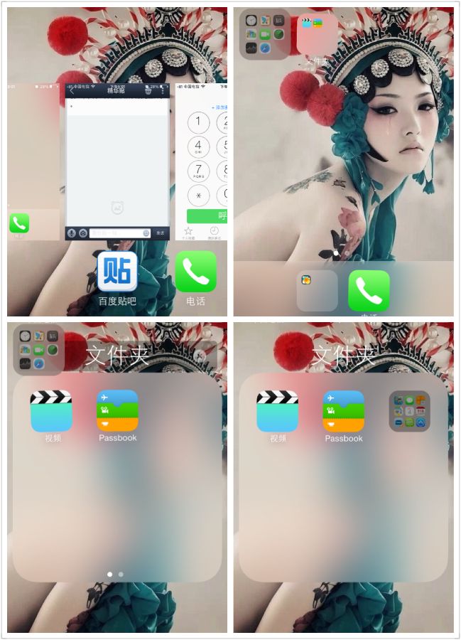 ①首先桌面上要有两文件夹。按住一个文件夹的同时按两下主屏幕键(按文件夹要跟按第一下主屏幕键同时,也就是说两个同时按下去再按一下主屏幕键)。按完后会跳到后台,点开桌面那一页,这时会看到你刚才按住的那个文件夹变大变灰(没有变大说明上一步没按对)。然后点开另外一个文件夹,最后按一下主屏幕键停止抖动文件夹就套进去了。